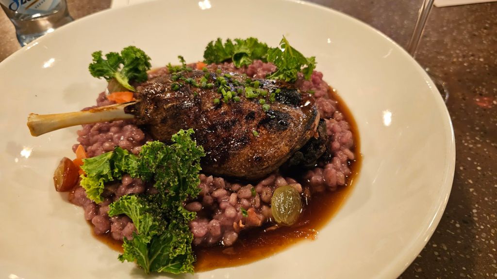 The bartender recommended I get a rib eye, but, having had one 24 hours before, and wanting to try something a bit more Hungarian, I went with the duck leg confit. It was served on a bed of barley, which was fine, but I would have been fine with some type of potato or even white rice (very Filipino of me.)