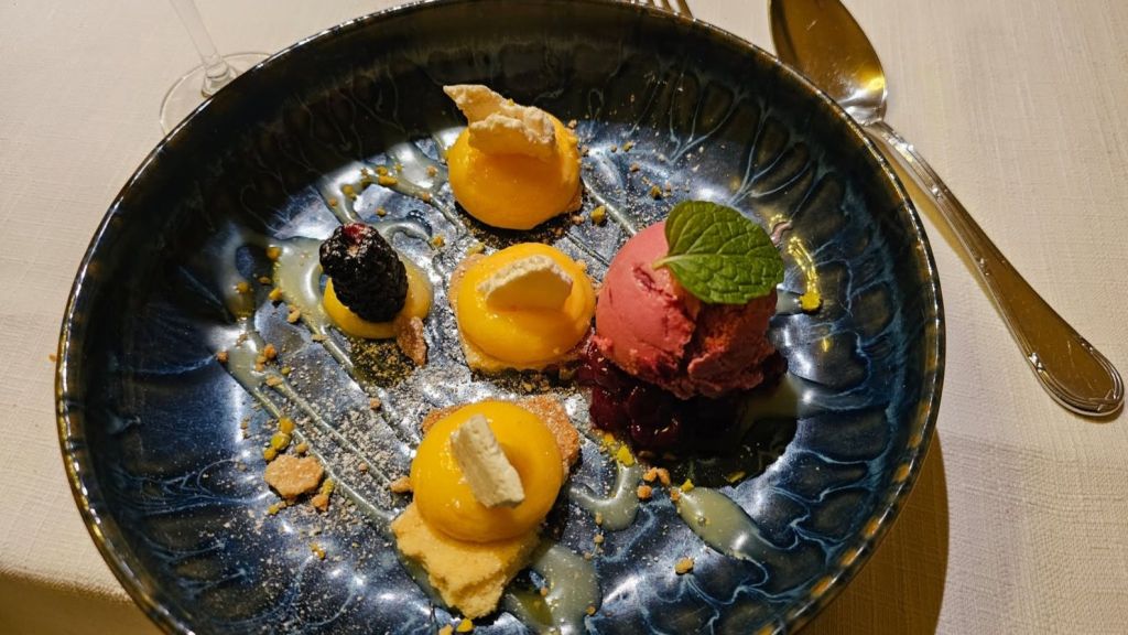 For dessert, I ordered a plate that included pastry, lemon cream, and cherry ice cream. It seriously made rethink how I felt about lemon desserts because previously I hadn’t been a fan.
